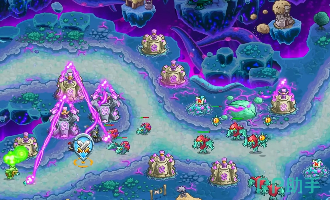 奥术法师760的满级造价总的来说性价比非常高,若各位点了减价的天赋,那么它的造价还能减少到740/720。在战斗中,奥术法师会间歇性的发射紫色的射线来攻击敌人,间隔大概为2秒,且伤害较高、攻击相对稳定,在整个游戏中的防御塔输出能力上也属于上乘水平,是前期很实用的一座开荒塔。但要注意它的单次攻击只能打一名敌人,若是面对多敌环境或高速敌环境,最好搭配上圣骑士殿堂,让后者召出来的骑士能帮奥术法师拦截住怪,令它有充足的时间来进行输出,否则很容易就会出现漏怪的情况。