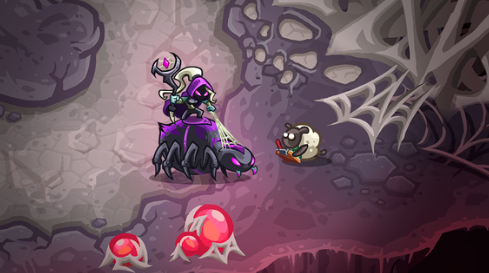 恐蛛症任务包含多个关卡,每个关卡的地形都较为复杂,多路径的设计让敌人可以从不同方向发起进攻,增加了防御布局的难度,关卡中出现的蜘蛛类敌人多达七种,每种都有其独特的特性,撑着降落伞的飞天蜘蛛是空中威胁的主要来源,它们能避开地面防御塔的攻击,直接冲击防线后方,给防空能力带来极大考验,腐晶巨蛛则拥有坚硬的外壳,防御能力出众,同时还具备吸取对手生命的技能,在战斗中不仅难以被快速消灭,还能不断恢复自身生命值,是极为难缠的敌人。