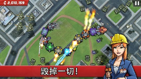 一款卡通风格的策略破坏类手游,玩家操控巨型机械蛇在全球城市搞破坏,对抗人类军队。机械蛇由红、黄、蓝三色能量块组成,吞噬能量块能延长蛇身、解锁武器,同色能量块可合成超级能量核提升威力,还能组合出数千种攻击搭配。巨蛇自动移动攻击,玩家主要操作是拖拽合成能量块,调整武器配置应对坦克、直升机等威胁。
