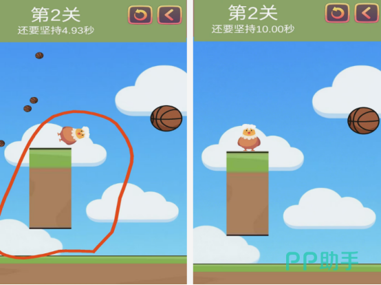 是需要保护里面的鸡哥为主要任务,避免被篮球伤害的,而在玩的时候,也有着非常简单的方法,就是通过画出红线这种方式,为它构建一个很好的保护区域,如果坚持时间比较长,可达到每个关卡当中要求的时间以后,就可顺利的完成游戏中的任务。采用清晰又简单的风格以及趣味性的玩法进行。点击开始按钮以后,就需要为了保护里面的小鸡而努力。