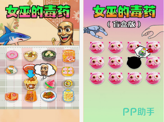 有着现实生活中大家喜欢吃的各种零食,也是以现实生活中,特别受大家喜欢的女巫的毒药玩法进行设计,玩的过程当中,需要通过自己选择一种喜欢的零食,为自己的毒药,通过不断点击所显示出的各种零食以后,如果谁先吃到对方,所选择的零食以后,意味着挑战失败。有着清晰又简洁的画面,还有趣味性的玩法,无论你是里面的哪一个角色,等考验玩家的运气,并没有任何的难度。