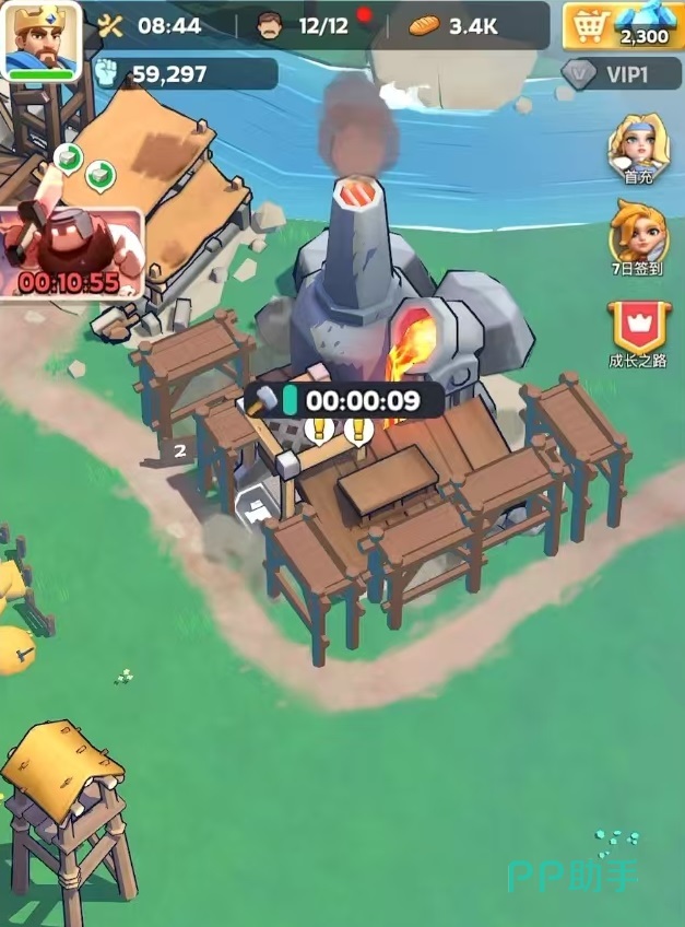 在游戏开局的时候采用的是塔防开局的模式,玩家作为领主,可以通过摇杆控制移动并且操控技能战斗,其他角色会自动跟随进行攻击。通过这种方式击败敌方单位升级,保证了初期的资源获得。接下来就是进行村庄的基础建设,在建立村庄之后,游戏就转入到了模拟经营的玩法中,需要围绕着塔防来进行战斗,建造箭塔等各种防御工事,抵御敌方的入侵。