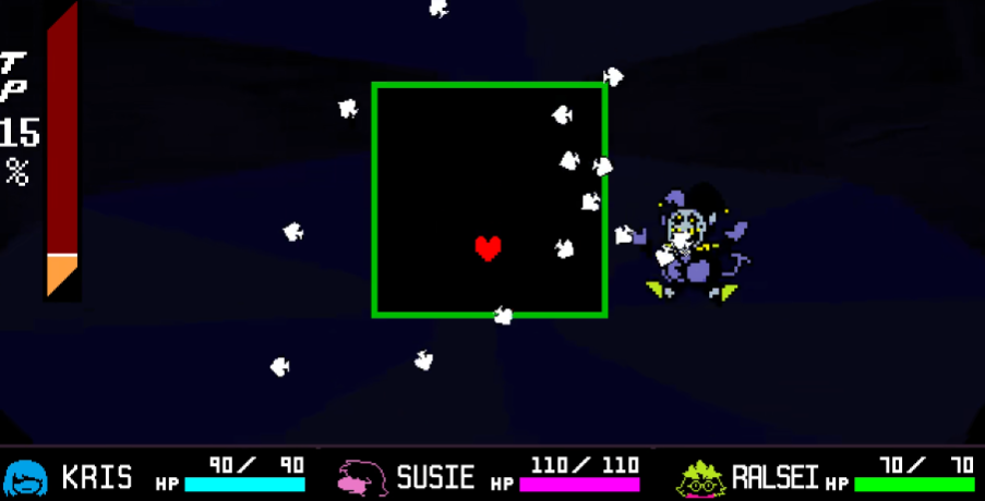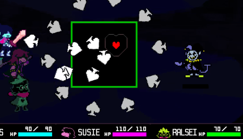 应对Jevil的攻击需掌握特定技巧,黑桃攻击发动前,Jevil会有特定动作或音效预警,玩家需迅速将角色移至最右下角位置,最大程度躲避伤害,移动中要避开其他干扰性攻击,旋转木马攻击时,需保持角色与木马接触框相同高度,根据木马运动轨迹和速度变化,提前预判位置并调整角色位置,同时留意周围其他危险元素,战斗中Jevil可能召唤分身干扰,分身生命值和防御力较低,建议优先清理,可使用范围性攻击技能或集中火力逐个击破,清理过程中需留意本体攻击动向,避免角色受伤,清理完分身便可集中精力应对本体。