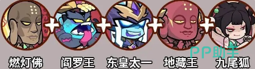 然后还有以持续输出见长的灼烧联动队,核心架构也是很不错的,其中的阎罗王稳坐主C宝座,面对Boss时能造成高达40%的增伤效果,同时自带吸血续航机制,大招爆发力惊人,瞬间就能给敌人造成巨额伤害,地藏王化身副C与之紧密配合,群体灼烧加上麻痹控制,一旦触发地狱业火特殊状态,伤害直接翻倍,火力全开之下敌人难以招架,九尾狐发挥奇兵作用,削减敌方15%法防并聚拢怪物,大大提升AOE技能打击效率。