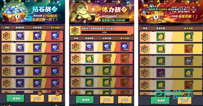 接着谈谈小氪玩家该把钱花在刀刃上的地方,首当其冲的是6元首充礼包,尽管其中包含的阎罗可能略显鸡肋,但在尚未获得盘古之前,阎罗在前期战斗中的表现着实可圈可点,体力战令堪称性价比之王,是最值得入手的,它能有效缓解玩家体力不足的困境,钻石战令同样不容错过,此外观看广告也是一种低成本获取资源的好办法,这些小额投资虽看似不起眼,却能让新手在游戏前期获取一些优势。