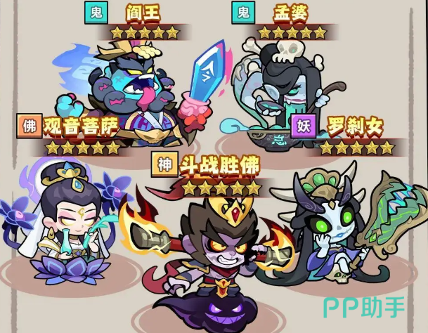 更为亲民的是,该阵容中的角色大多极易获取,培养所需资源也相对有限,无论是囊中羞涩的平民玩家还是财大气粗的氪金大佬都能轻松组建并驾驭这套阵容,具体而言其成员包括罗、孟婆、观音、斗战胜佛以及罗刹女,其中除观音的培养稍显复杂外,其余角色均门槛较低,队伍中的输出担当是阎罗与斗战胜佛这两位猛将,一旦手中握有充足资源,务必优先对他们进行重点培养,培养后的角色在后期会起到更适配的效果。