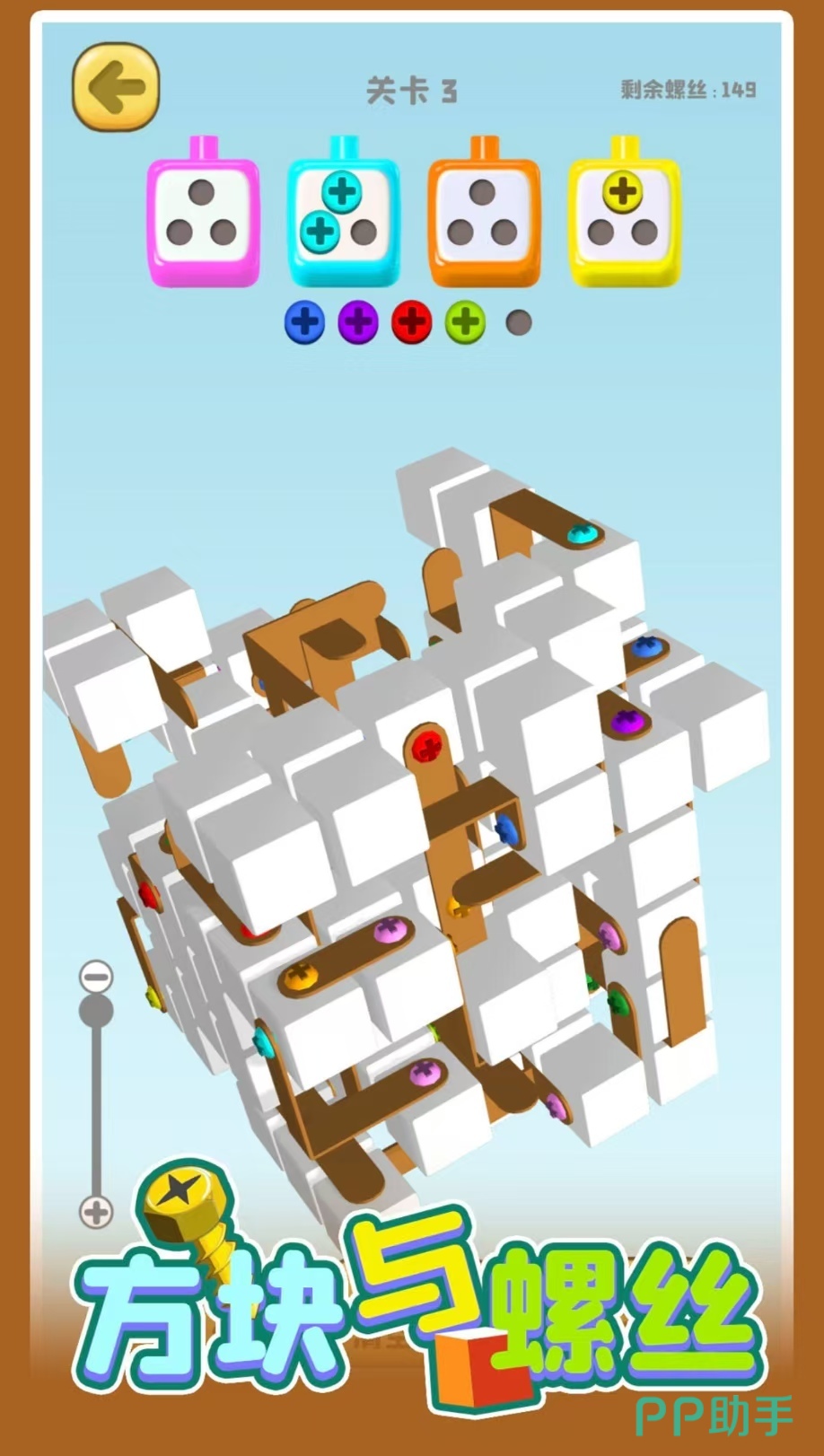 《方块与螺丝》需要按照一定的顺序来解螺丝,需要将三个相同的螺丝进行消除,而且必须是三个同样的颜色,游戏的每个关卡内都拥有一个方块。方块上会排列着许多的螺丝,可以自由的进行移动和旋转,将不同位置的螺丝揭开。每次消除掉之后都可以获得金币,可以用金币为自己的家园进行装修,逐渐的拥有更多的家具和装饰,每个关卡内将有不同的任务,也可以使用提示等功能。