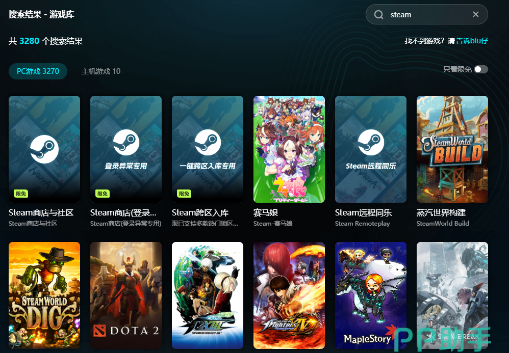 限免游戏库的出现,更是能让玩家去针对不同的游戏作品来开启加速,并且biubiu整合了大量日系二次元风格模拟游戏,同时还能针对steam加速的同时,同步为对应的游戏提速,这点就很给力了,让玩家不用担心是否有专区的问题,只要是对应平台运行,那么加速它就可以了。