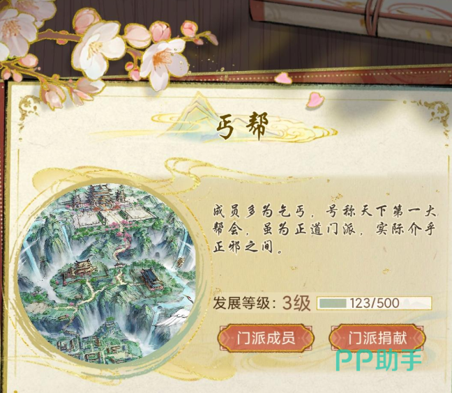 丐帮:作为江南区域的门派,坐落于狮子山下。山脚下的屋子排列整齐,村民会在这里劳作或者是经营小生意。丐帮弟子还会行走江湖,会有一些的绝招,例如通过乞讨可以获取铜钱。专属的门派武学还会拥有丰富的招式,其中就有打狗剑法。打狗剑法的招式还是变化多端的,可以有效降低敌人的命中几率,往往都会让对方防不胜防。