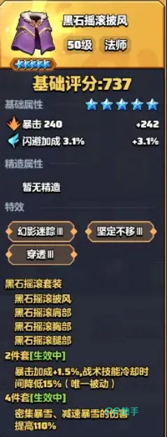装备搭配方面,不同阶段应根据自身技能搭配与副本需求灵活调整。黑铁王座套装穿透属性加成为主,适合搭配输出流技能组;黑石摇滚套装则倾向于暴击加成,更适合搭配高频率技能打出暴击连击。装备词条选择上,法师优先考虑攻击、命中、穿透与暴击等关键属性。