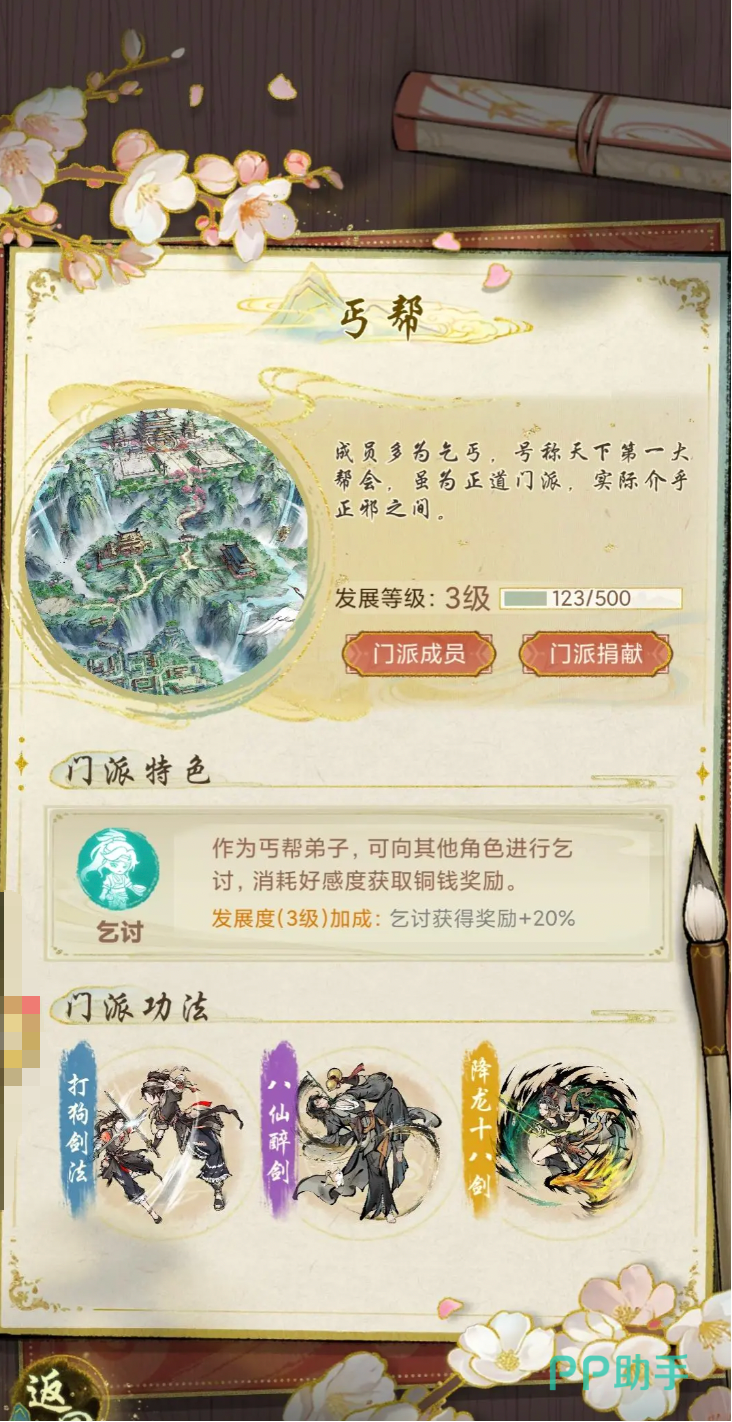 以当前版本来看,丐帮与水榭是比较热门的两个选择:前者以“资源获取”见长,每日消耗精力乞讨即可稳定获得铜币,为前期功法、丹药等提供保障;后者则主打“武学养成”,通过双修玩法快速获取大量剑意,在功法升级速度上具有天然优势。