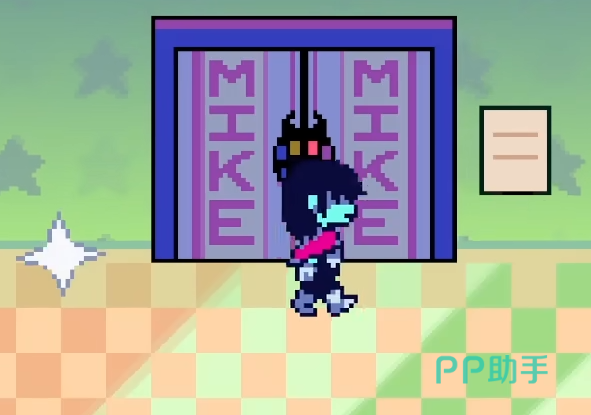 接下来是假麦克三人组,这个三人组的触发条件是玩家们需要通过第四章才可以。然后我们在通关之后读档,在大门前可以看到有个光柱,触发可以回到城堡镇。然后进入城堡镇的TV房间,左边的门里面便是这个三人组。