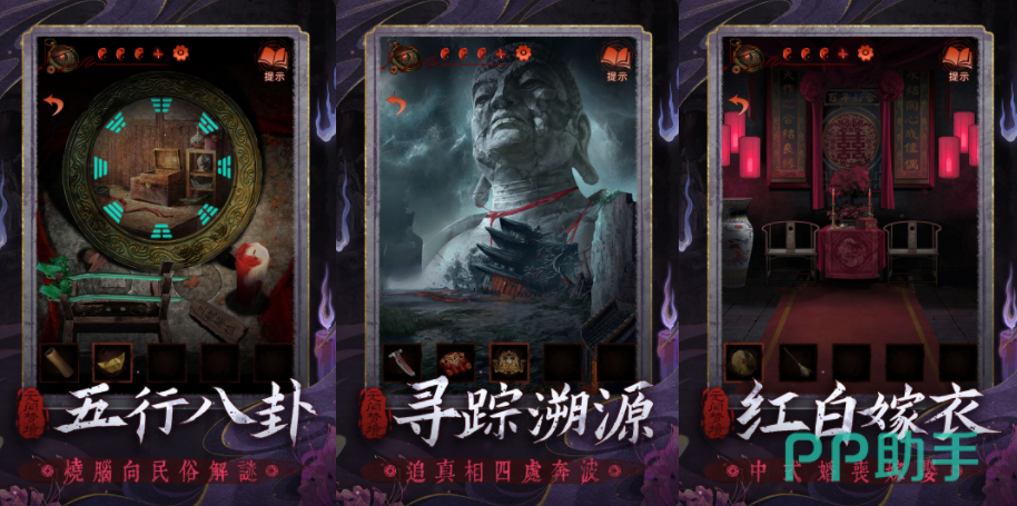 宅怨中,玩家会进入被怨咒笼罩的古宅,古宅内房间众多、通道复杂,玩家需要通过移动搜索各个角落,这样才可以逐步揭开古镇背后的秘密,在破解案件的过程中,会有闪烁的灯光以及隐约的哭声,玩家需要借助蜡烛驱逐邪祟,同时还需要收集各类道具,破解游戏里的机关谜题,只有这样才能随着深入的探索发现隐藏在黑暗里的真相。