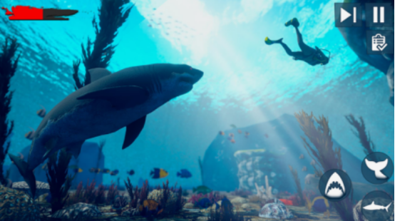 当你在游戏当中扮演鲨鱼的角色以后,既能感受海洋当中的霸主,它所具备的强大战斗实力,还要为了生存下去,在海洋里面不断的游动去寻找食物。在玩法上比较简单,是以完成惊险的任务为主,整个过程当中需要张开大嘴,寻找能吃的猎物。有令人惊叹的游戏环境,还有机会通过与蓝鲸打架的方式,展现出自己在海底的战斗实力,支持对鲨鱼皮进行自定义,可以自由的在海中遨游。
