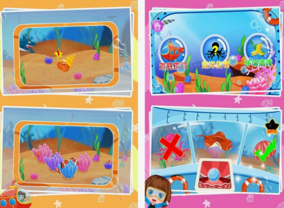 为了让很多的儿童,都在游戏的世界当中看到海底。这是专门为年龄小的宝宝所推出的,涵盖了海底世界当中很多的生物,还以卡通的风格进行设计,无论是体型特别庞大的鲸鱼,或者是小章鱼,都能利用点击屏幕的方式,控制他们在海底的移动方向。有超多趣味性的玩法,其中就包括在海底当中探险,发现超多奇怪的生物。同时还支持对环境进行清理,让每一个宝宝对海洋有更好的认知。