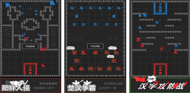 在汉字攻防战游戏中,以汉字独特的结构为基础,设计了一种全新的对战玩法,充满了策略性与趣味性,玩家需要将汉字拆解成不同的偏旁部首,这些偏旁部首就像是一个个士兵,拥有不同的攻击力、防御力和特殊技能,玩家需要根据对手派出的汉字,合理地拆解自己的汉字,派出合适的兵力进行攻防对抗。