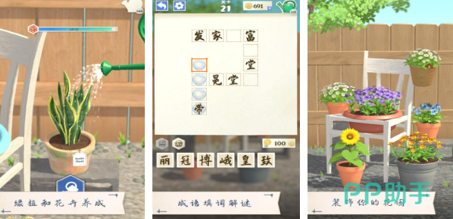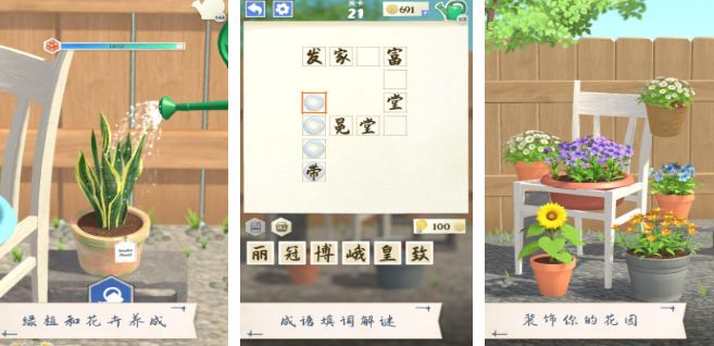成语花园游戏中,将成语学习与轻松的养成玩法相结合,营造出一种愉悦而惬意的氛围,玩家可以拥有一个属于自己的花园,还可以通过完成与成语相关的任务,获取阳光、雨露等神奇的道具,用来浇灌花园里的植物,随着任务的不断完成,植物会逐渐生长、开花,花园也会变得越来越美丽繁茂。