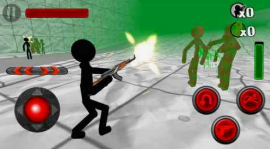 在这款以3d的风格所设计,通过不断与僵尸进行大战为主要玩法的手游,它同样是一款设计,比较简约,而且单机的状态下都可以进行畅玩的。在控制里面的火柴人时可使用丰富的武器装备,在形象上与僵尸的区别就是,在颜色上当看到了充满着恐怖元素的僵尸怪物时,需要展现出自己在设计方面的实力,点击屏幕就能控制火柴人的方向,也可轻松实现射击等操作。