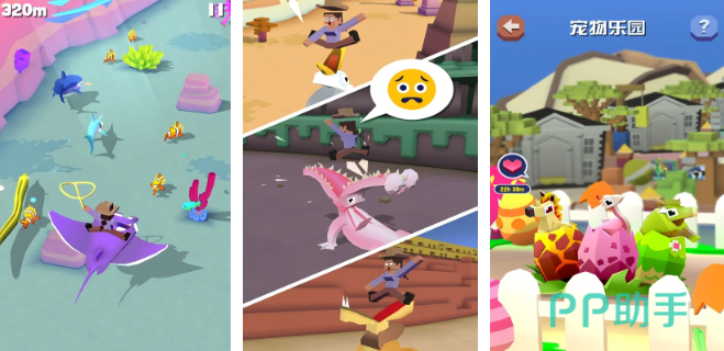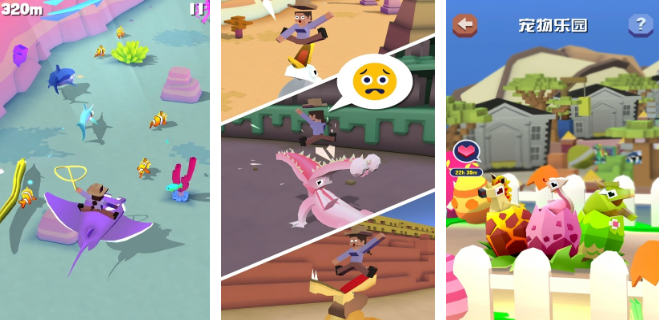 在疯狂动物园游戏中,将跑酷与动物收集结合,玩家骑乘动物在草原、沙漠等不同的场景中奔跑,途中需要躲避各种障碍、撞击木箱获取道具,同时还要驯服野生的新动物,每种动物都有特殊的能力,如鸵鸟能进行高速冲刺,快速穿越障碍,大象可以撞碎坚硬的岩石,开辟前进的道路,这些能力为跑酷增添了更多的可能性。