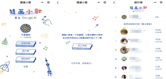猜画小歌游戏中,结合了先进的AI识别技术,打造出独特的人机互动体验,带来不一样的猜画乐趣,玩家需要根据提示的词语在屏幕上进行绘画,AI系统会实时识别画作内容,一旦识别正确就会进入下一关,玩法主打单人闯关,难度随着关卡的推进逐渐提升,考验玩家用简笔画快速呈现事物特征的能力。