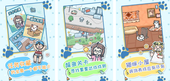 充满童趣的一款游戏会有大量精美的场景,可以给玩家呈现出一个温馨的游戏大世界。很可爱的猫咪角色,一看就比较有吸引力,也能符合一些喜欢萌系风格的玩家。游戏的音乐效果是比较动听的,配合愉悦的游戏基调就可以营造出比较欢快的氛围。在游戏的过程中,玩家还可以去收集一些道具就可以去铲除收益,然后去解锁更多的关卡。不仅会有躲猫猫的乐趣,还会有很多不一样的养成元素,可以加强游戏的可玩性。玩家通过点击链接,即可下载游戏,在游戏中可以感受趣味性的体验。