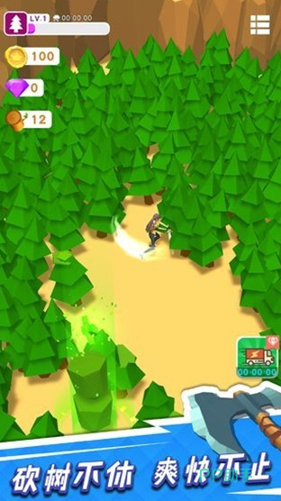 游戏巧妙融合了割草和放置经营等多种玩法,为玩家呈上丰富的游戏盛宴。玩家将摇身一变,成为一家伐木场的主人兼伐木工人。要凭借自己的努力,不断扩大伐木场的规模,从而收获更多的财富,一步步成长为声名远扬的伐木界大亨。玩家能尽情沉浸在砍伐树木的欢乐之中,让内心的烦恼与压力随着树木的倒下而烟消云散。关卡数量多样,超多精彩玩法等玩家来一一探索尝试。游戏中的砍树挑战简约而不简单,多样的玩法会随着游戏进程不断解锁,让玩家始终能感受到源源不断的趣味。