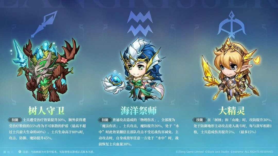还有新士兵登场,除了新颖之外,士兵队伍也是进一步状态,下半年会有10个新士兵与大家见面,周年庆当中,会上线全新的“翠翼射手”和“禁林通灵师”;新兵上阵,老兵的SP也必须安排,周年会迎来“树人守卫”、“海洋祭师”、“大精灵”三个士兵的SP形态。