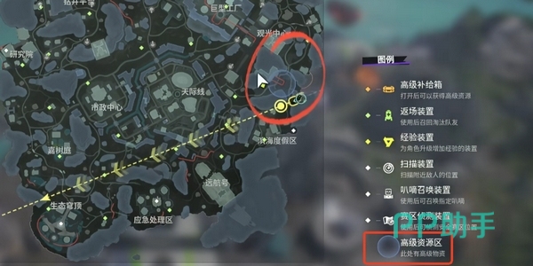 进入每一局游戏后,地图上会自动随机刷新出一片蓝色圆圈,这就是系统提示的“高级资源区”。这些区域是系统划定的高级物资集中地,一旦刷新出来就会被全图玩家盯上。