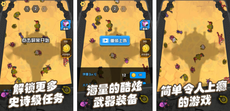 全民打僵尸游戏中,以轻量化射击体验为特色,让不同年龄段玩家都能快速沉浸其中,游戏采用上帝视角俯瞰战场,自动瞄准机制降低了操作门槛,玩家只需通过虚拟摇杆控制角色走位,点击技能按钮释放AOE攻击即可,角色养成系统层层递进,通过收集僵尸核心、能量晶体等材料,甚至能激活变身形态,短时间内化身巨力战士,挥拳秒杀成片僵尸。