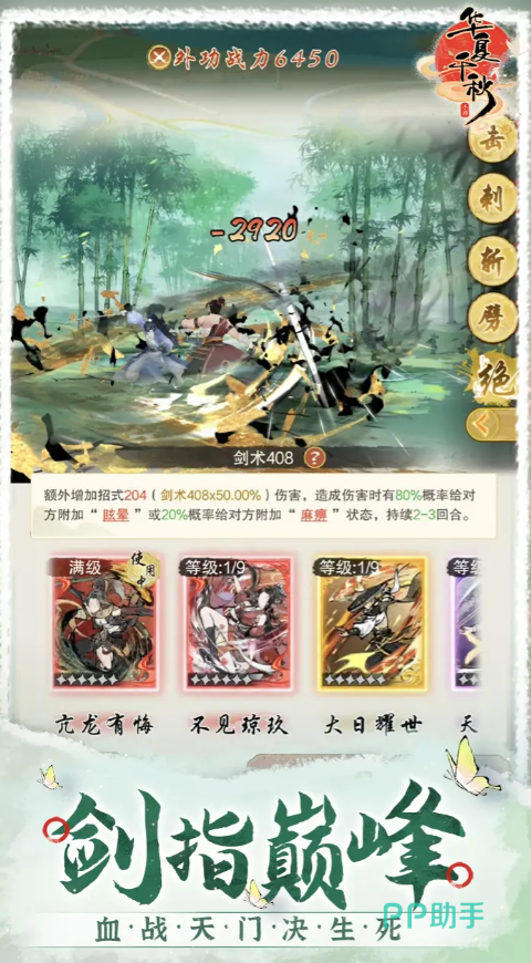 打狗剑法也属于丐帮,它能额外增加3点的伤害,并且在每次造成伤害的时候有30%的概率给敌人附加上麻痹,持续2回合,如此能降低敌方的命中,让我方占尽优势。