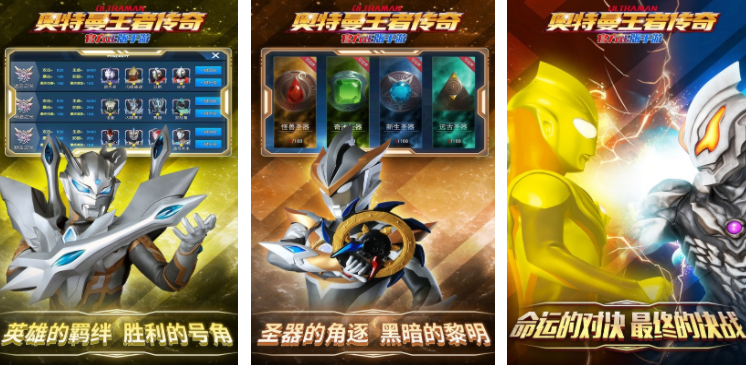 奥特曼王者传奇是奥特曼正版授权的 3D 动作卡牌手游,里面用全 3D 视觉特效真实还原奥特曼宇宙,众多奥特曼齐聚,再现经典场景,每个奥特曼独具特色,不同技能搭配产生不同效果,玩家需合理搭配阵容发挥最强实力,游戏里还会有圣器的设定,可以给这些圣器加装装备,这样就可以让奥特曼有更强的战斗力。
