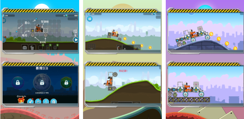 暴爽疯狂赛车这款2D画面的赛车竞速游戏有着卓越的车损系统,游戏场景刻画卡通萌系且动态效果优秀,极为硬核的沙盒建造玩法让赛车的造型更加多样,游戏设定巧妙且道路情况十分复杂,玩家甚至能随意在赛车上放置配件提升性能,多样且复杂的道路呈现无疑增加了这款赛车游戏的难度。