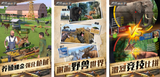 在神奇的荒野当中,玩家将会面临着各种各样的疯狂野生生物,比如有百兽之王大老虎以及大狮子等等,在特别刺激的狩猎场当中,您可以展现出自己高超的狩猎技能,利用手中的武器精准瞄准并成功完成爆头的任务,每次在扣动扳机的时候都能够打造出传奇的狩猎事情,其中有丰富多样化的武器,任凭玩家随意操控。