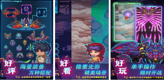 竖屏的展现形式,还以飞机射击为主要的题材。在原有的弹幕设计玩法上又融入了肉鸽元素。操作的方式特别简单,玩家可通过点击屏幕并滑动屏幕的方式,就能合理操控其中的战机,完成相应的战斗体系,每种战机的战斗方式以及射击技能是完全不同的,而玩家在射击敌机的过程当中,也要及时躲避敌方的攻击,千万不要被其子弹击中,否则就会导致游戏失败。