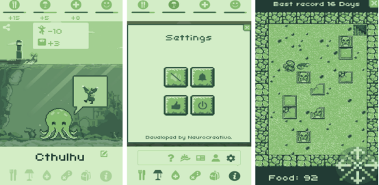 虚拟宠物为主要题材,还在原有的基础之上融入了克苏鲁神话的故事,这里有很多宠物都等待玩家来收集养成,通过按时喂养以及轻松互动的方式,时刻了解宠物的健康情况,以及体力值,只要确保每个细节的平稳之下,就能够让这些宠物茁壮的成长,其中还提供了互动的机制,比如投掷骰子决策以及地图探索的小游戏等等。这些游戏的设计已经增加了游戏的好感度,整体也采用了复古的像素画面进行展现。
