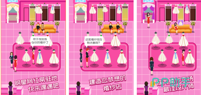 梦幻婚纱店这款女性向的模拟经营类游戏呈现的玩法更多,超前的经营设定和华丽的画面塑造都为游戏加分不少,玩家要成为梦幻婚纱店的老板尝试经营,也可以充当裁缝帮助角色打造各种各样的婚纱,这款服装店经营类的游戏代入感可圈可点还有着特殊的视角,喜欢服装店经营类游戏的女生都可以试试哟。