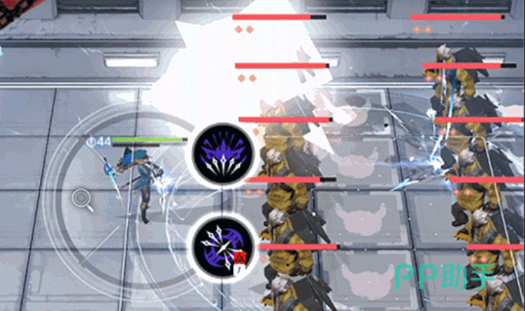 必杀技”天坠磁爆”,持续消耗残锋,操控涅槃港升空,每消耗一定层数残锋,就能发射一定数量的天坠磁刃,攻击技能范围内不同的地格,会优先选择存在敌人的地格。
