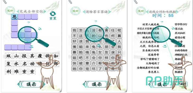 以上就是小编找到的全部汉字找茬游戏了,再介绍一些汉字类解谜互动手游给大家。