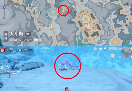 第四个回忆点相对来说稍微复杂一点,它位于联合学院的右侧。玩家需要沿着大路走,前往河道区域,最后抵达天斗城居民区的西北方。地图上会显示出一个明显的卷轴标记,走到这个位置后,记忆会自动解锁。