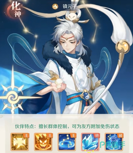 队伍里缺少群控时,在伙伴位置上阵镇元子很好地补足这点。他是一个团控能力很强的伙伴,可有效地去限制敌方的行动,令己方的输出角色和灵兽能更舒服地打满输出,并且镇元子还具备着可令己方角色获得免伤效果的能力,配合上地府职业或角色能令队伍的生存能力得到极大提升。