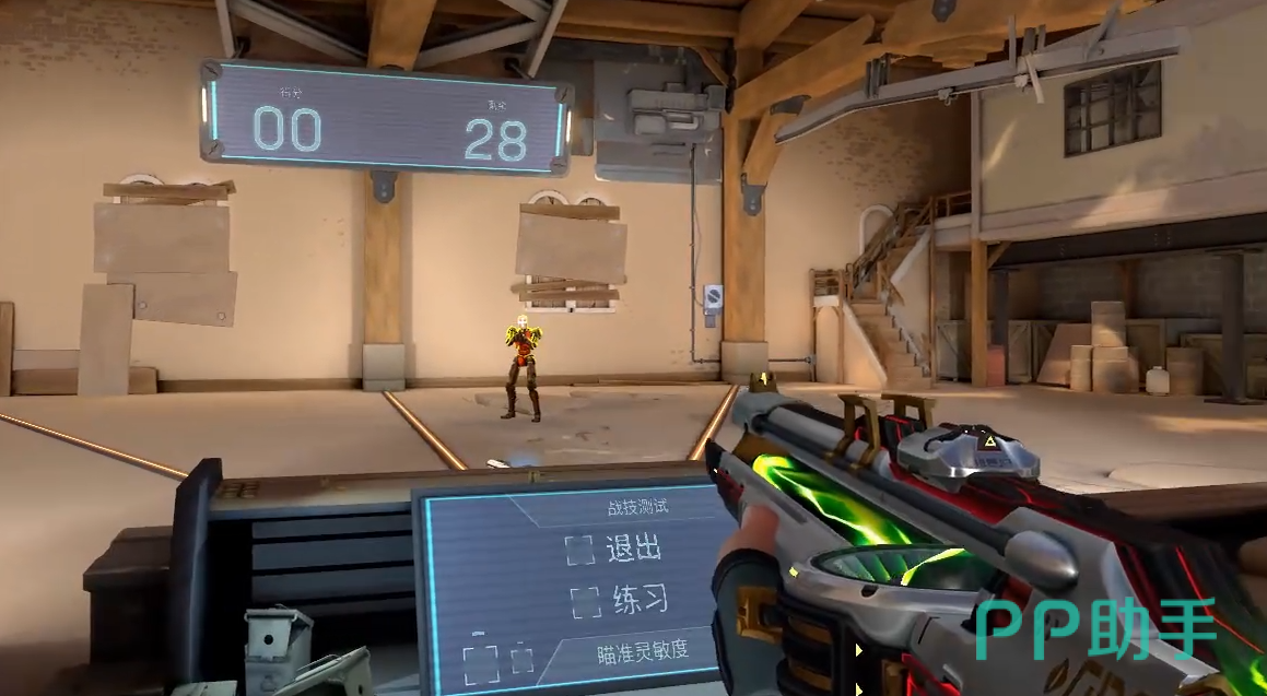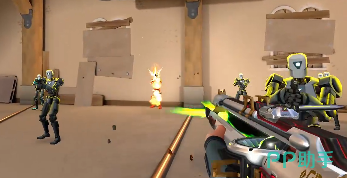 最后是控枪练习,我们可以先把前面几发子弹打向墙壁,然后迅速进行拉枪,把准星控制在机器人的头上,就打前面几发,然后迅速拉枪,这样练习能帮助我们一次性面对多位敌人,需要注意由于枪械后坐力的存在,一般情况下子弹都是前面3发是最准的,所以攻击其他目标时记得微调一下。