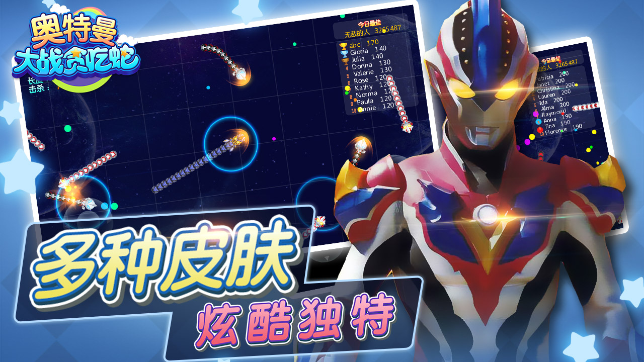 两个经典的游戏玩法融入在一起,为玩家们带来了全新的操作体验,多模式的竞技选择感受还是十分的生动,我们的玩家将会在这里去收集你们的奥特曼角色,并且在游戏内获取专属于不同角色的皮肤外观的奖励,《奥特曼大战贪吃蛇》这款手游还有特殊技能可以运用的哦。