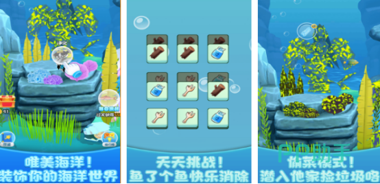 整体玩法解压又容易上手主打轻松休闲,非常适合碎片化时间探索加入昼夜循环系统,不同的昼夜模式,鱼类的活动变化都是有所差异的,全面增加沉浸体验。加入消除机制需要更加有极为敏捷的反应能力,这样才能快速消除并解锁珍稀的鱼类。同时又加入养殖模拟元素,需定期净化水质清理海洋垃圾,这样才能够享受真实的水族馆经营。