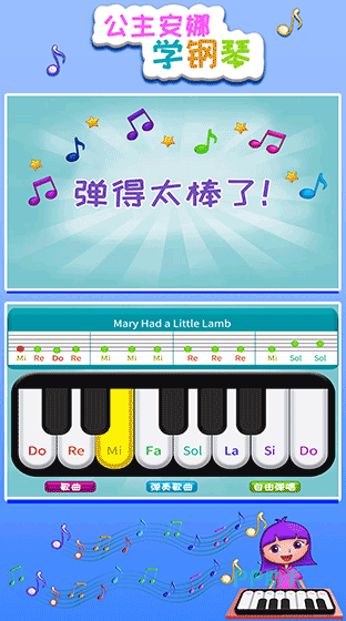 一款趣味十足的钢琴互动游戏,特别为玩家们打造了自由弹奏与歌曲练习的双重模式。简洁清新的界面设计,将复杂的指法转化为直观的图形提示,即使是学龄前儿童也能快速上手,在趣味互动中自然提升钢琴学习兴趣。通过智能引导系统,可以跟随旋律自由发挥,在探索音符组合的过程中激发艺术创造力。这种开放式玩法能有效锻炼手眼协调能力,培养音乐感知力与思维敏捷性,让每个玩家都能找到属于自己的音乐表达方式。
