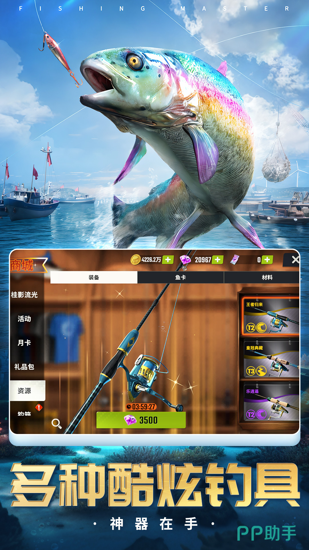 游戏采用先进 3D 技术,打造逼真湖泊、海洋等水体,光影灵动、鱼群多样,外观、习性各异,给予沉浸式体验。拥有洪湖、西沙群岛等多地钓场,部分限时开放,满足探索欲。超 200 种水下生物等你挑战,从常见鲈鱼到稀世奇珍,皆可收入鱼册。你可在数十款钓竿、鱼卡中培养趁手装备,搭配法宝精准上鱼,还能通过升级、定制,打造专属渔具。