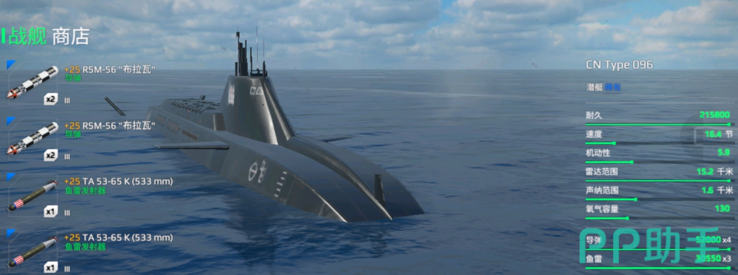 要是大家喜欢玩一些水下作战能力强的船舰,其实在今天的游戏中小编就要推荐096这款潜艇给大家,当然该如何为其搭配最为合理的武器组合也是用好的一部分,其实现代战舰096武器搭配介绍也不是简单的,要知道096潜艇可是属于3级战列舰范畴,天生就具备着出色隐蔽性以及爆发伤害,而一套精心规的武器配置带来的潜能也是很大的。