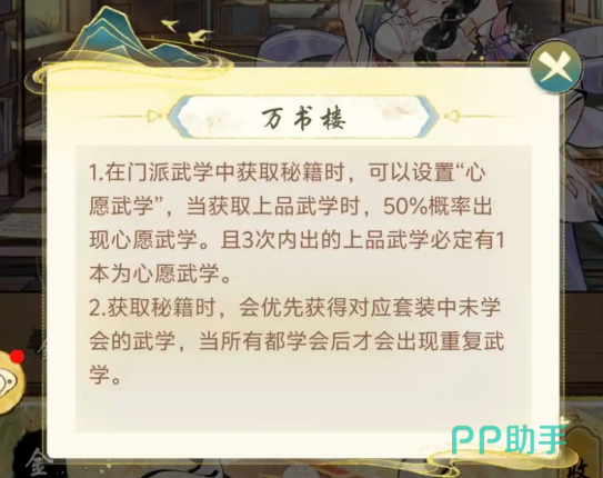 利用三级前免费重置规则,就可以选择去反复的刷新。经验数值在满了之后就可以选择立即重置,然后就可以直接转移,到了后期就可以迅速的升级,减少不必要的资源浪费。在门派武学中,玩家也可以去设置心愿武学。可以有机会获取上品武学,同时也有50%的机会可以出现心愿武学。大概每三次就能获得一本心愿武学。在获取密集时就会优先的获取对应的武学,主要是在对应套装中还没有学会的,在全部学会之后,那么自然就会出现重复的内容,这也是大家所需要了解的。