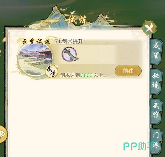 龙女试炼和云梦试炼:这两个其实就是难度相对比较高的挑战玩法,也同样是获取功法的一个主要方式。玩家选择独自一个人挑战,基本上没有太多的成功几率,那此时玩家就可以选择组合成阵容的方式。在这个关卡中会有许多的层数,每一层数的关卡都会有所区别,而一旦在挑战成功之后就会有丰厚的奖励。例如里面就会获取红色的功法,包括武学招式又或者是内功等等。但是目前为止有一部分的关卡还没有开启,就必须要满足对应的数值,玩家就只能选择保持耐心去等候。在挑战的过程中也有一些概率可以触发事件,一旦在完成交互之后就可以获得功法奖励。