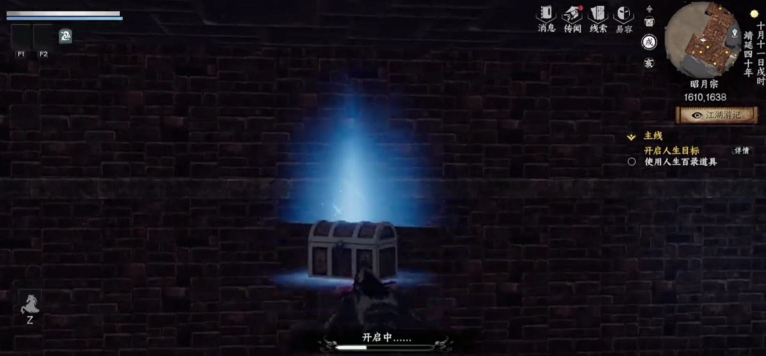 昭月地宫有它位置上的特殊性,所以有两种进入的方法,第一种的要求较高,需要玩家们将主线任务达到一定的程度才可以解锁,当玩家们完成了黑沙寨的主线篇章之后就可以开始探索昭月地宫了,不过昭月地宫还需要一个任务才可以触发,首先需要玩家们到达关外,关外在游戏中的具体地址为[1610,1643],当到达关外之后玩家们就可以四处寻找本次任务的关键人物萧和了,与萧和接触后直接开启一个’经脉重塑‘的支线,玩家们只需要全程跟着支线的任务要求就可以找到昭月地宫。
