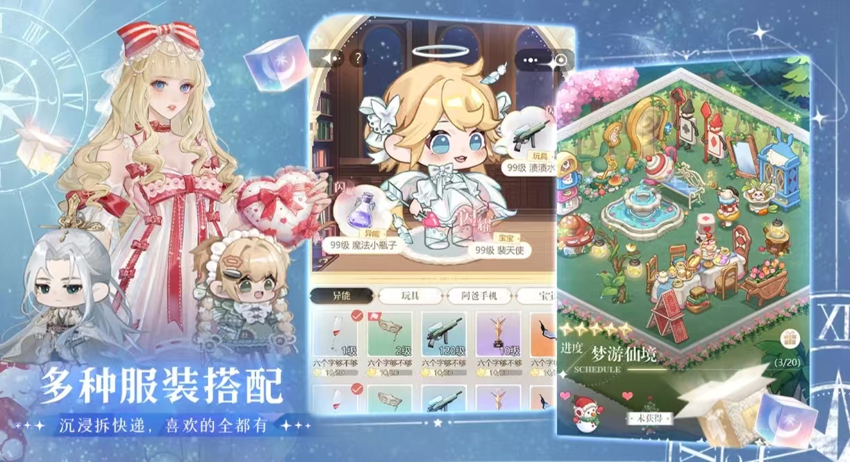 《时光公主》是一款剧情类的换装游戏,将穿越到很多童话的故事当中,可以对剧情的走向进行选择,和很多的人物发生互动,也可以选择NPC提高亲密度。游戏内的画风非常的唯美温馨,可以自由度的进行捏脸,选择不同的皮肤和五官。来自不同时代和国家的服装,逐渐的打造一个美丽的公主,还可以自己在游戏内进行设计,有非常多可爱的猫咪陪伴。